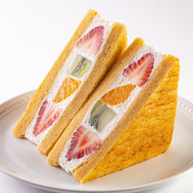 シート状に焼いたバウムクーヘンで「マスカルポーネチーズ」入りのクリーム、旬のフルーツをサンドしました。