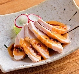 しっとり肉質の鶏むね肉に、山椒が効いた特製マーラーソースを合わせました。