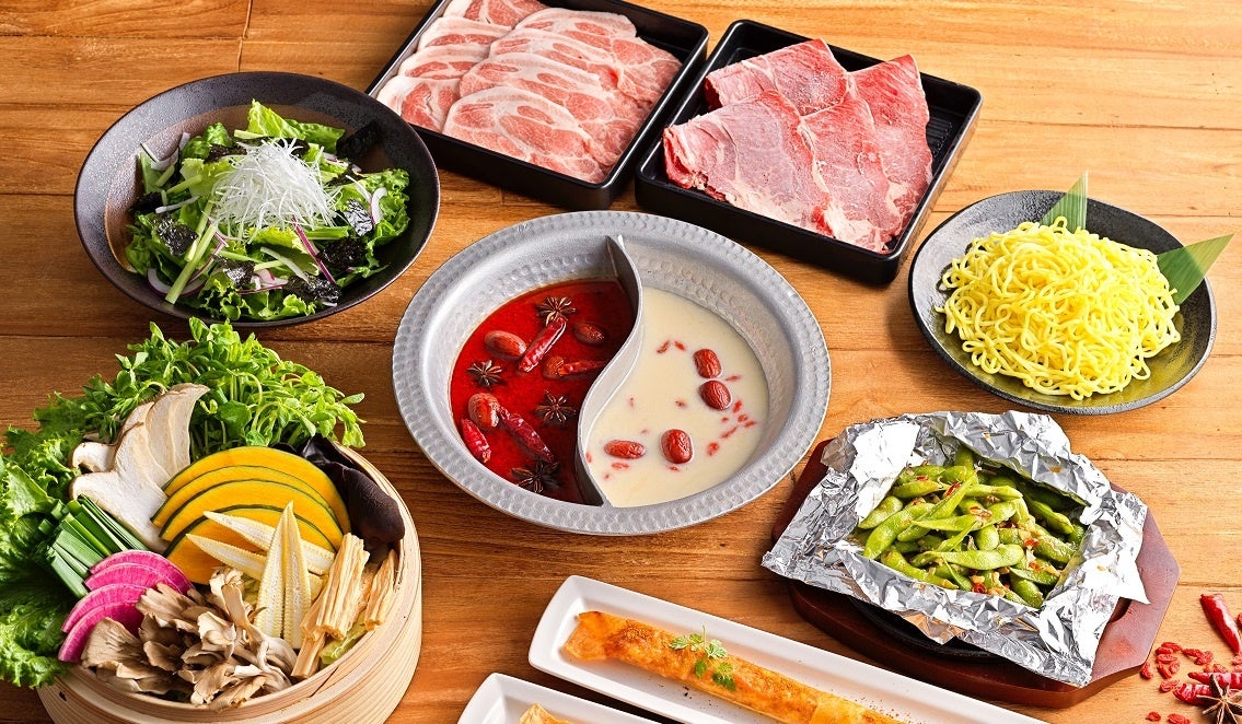 - 火鍋・豚コース 2時間飲み放題付 選べる2色スープの火鍋をヘルシーな豚肉で味わう全6品 3,000円