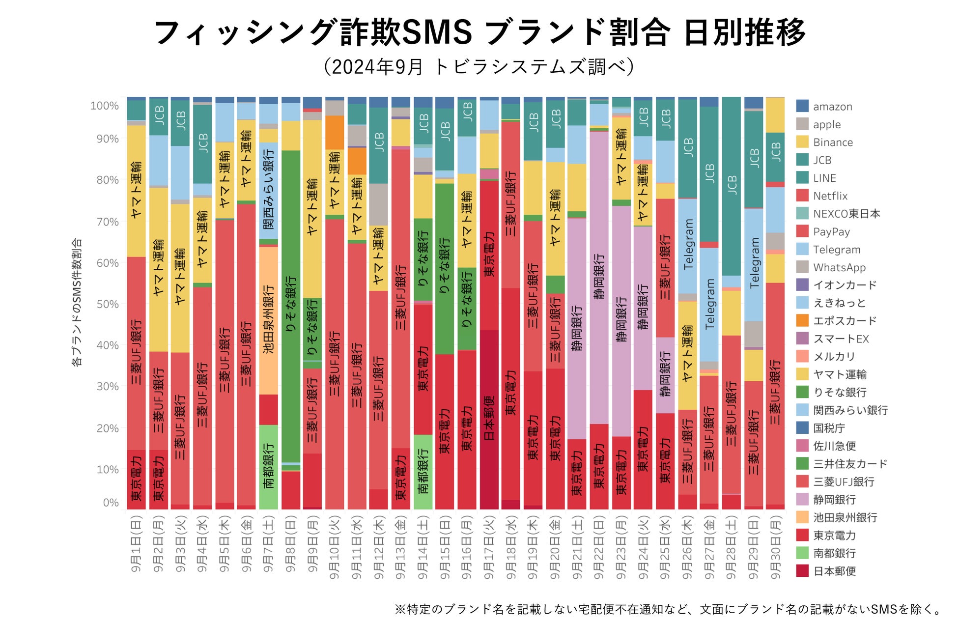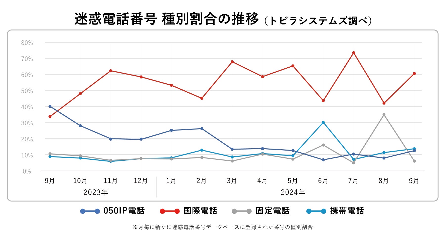 特殊詐欺やフィッシング詐欺の対策サービスを提供するトビラシステムズ株式会社(本社:愛知県名古屋市、以下「トビラシステムズ」)は、2024年9月に当社調査で確認された詐欺電話や詐欺SMSに関する独自調査レポートを公開します。(調査期間:2024年9月1日〜9月30日)