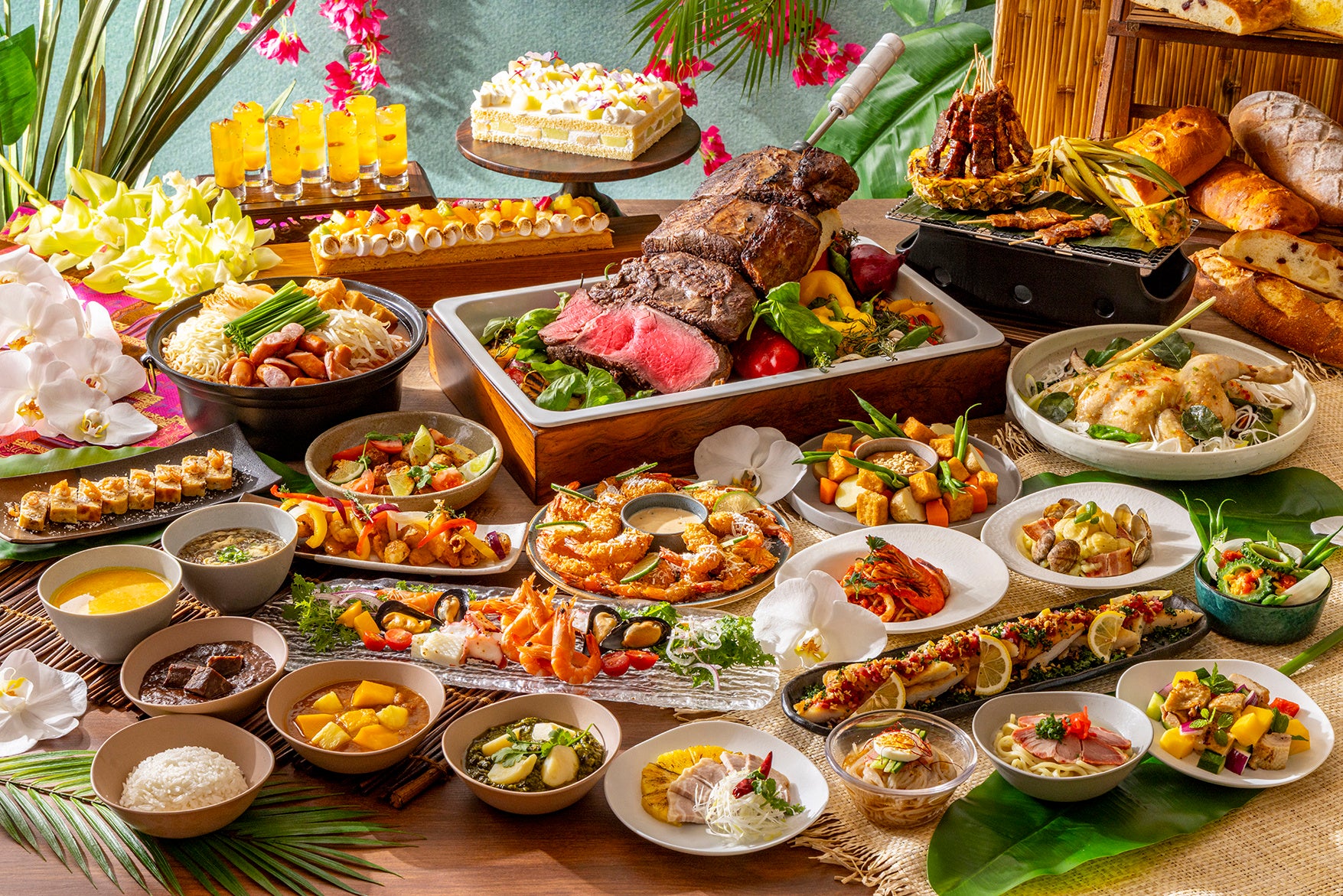 まぶしい太陽が降り注ぐ南国リゾートをテーマに、世界各国で経験を積んだシェフが手掛ける料理とスイーツを通じて、夏ならではの食体験を提案します。沖縄、韓国、インドネシアをはじめとするアジア各国の郷土料理に加え、常夏のハワイやカリブ海の島国ジャマイカなど、南国リゾートの味覚を幅広く取り揃えました。