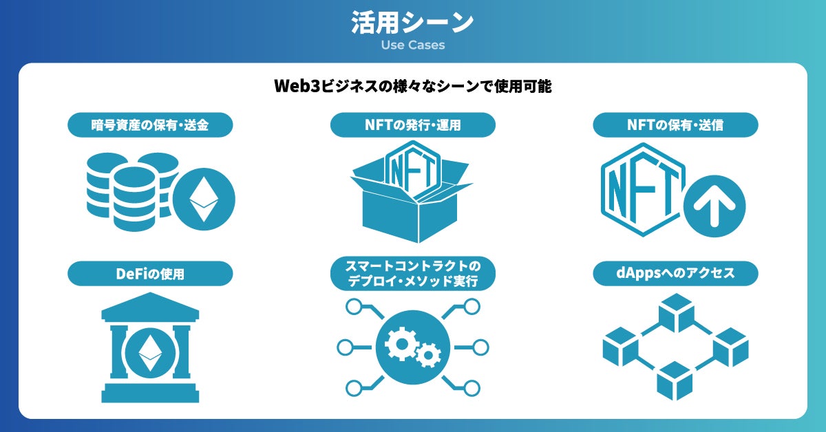 Web3ビジネスにおける様々なシーンで使用可能で、N Suiteを通じてオペレーションを安全かつ効率的に行えます。