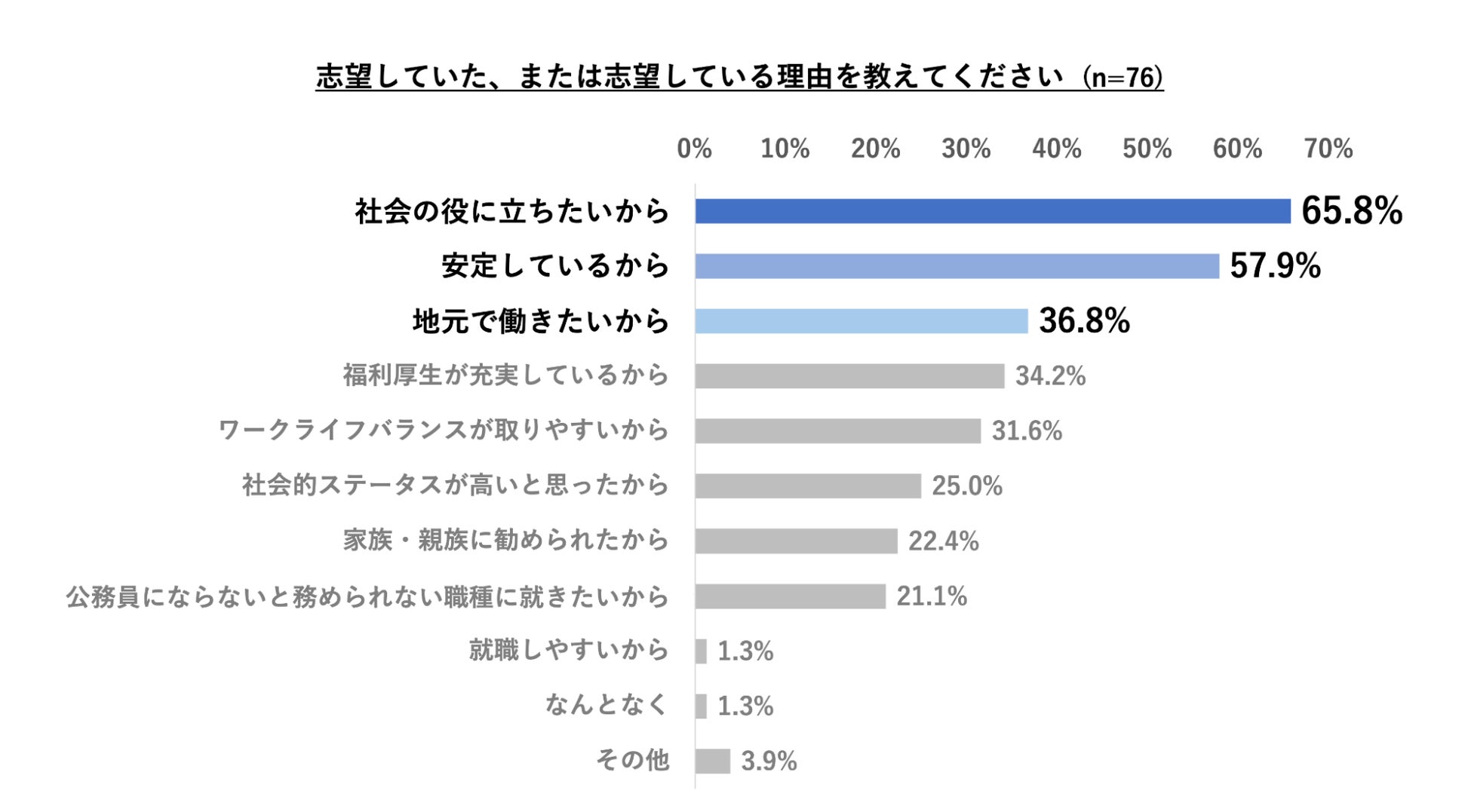 公務員を志望している・志望していた理由のトップは「社会の役に立ちたいから」