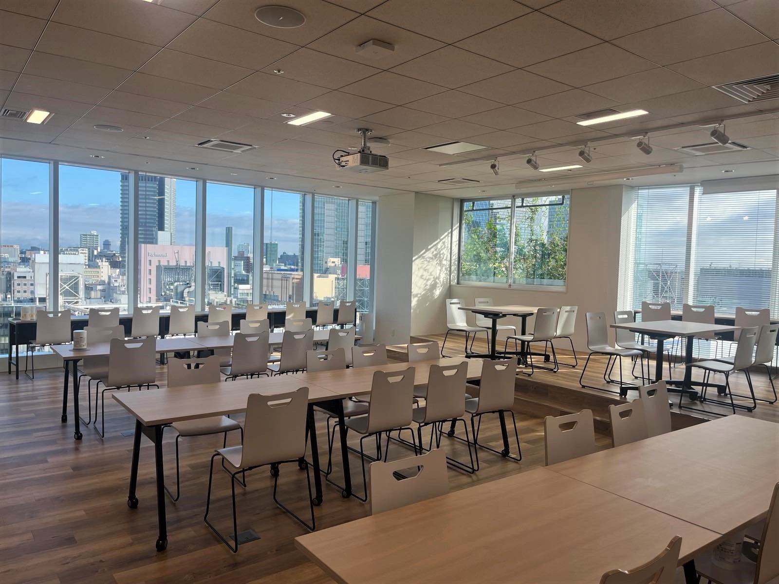 新しく移転した仙台支社は、せんだい都心再構築プロジェクト(注)活用物件として認定された「T-PLUS仙台」にあり、JR仙台駅から徒歩4分、地下鉄仙台駅から徒歩1分で、仙台中心部の利便性に優れた場所に位置しています。オフィス面積は従来の約2倍となる約1,000坪、執務スペースには約600席の座席数を設けており、研修室や複数の会議室、各フロアに備えた休憩室など、従業員の働きやすさを重視した設計になっています。また、社員専用のカフェテリア(食堂)では、栄養バランスに配慮した朝食・昼食・夕食を3食無料で提供します。