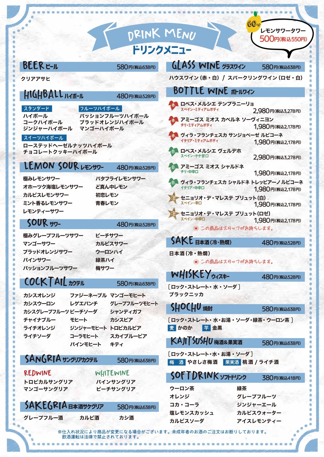 Dプラン【90分50品食べ飲み放題】肉レモお試しコース☆食べ飲み放題⇒2,200円