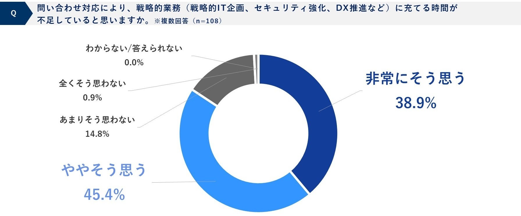 ・ 84.3%が「問い合わせ対応により戦略的業務の時間が不足」と感じている