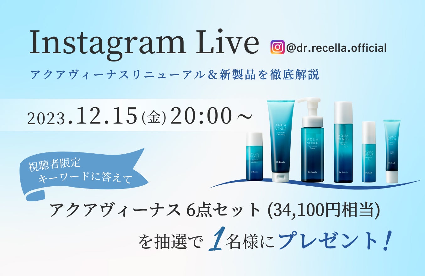 さらに、リニューアルを記念して12月15日(金)20:00から、ドクターリセラ公式Instagramにて、ライブ配信を行います。製品紹介やプレゼントが当たるキーワードクイズなど、内容盛りだくさんです!