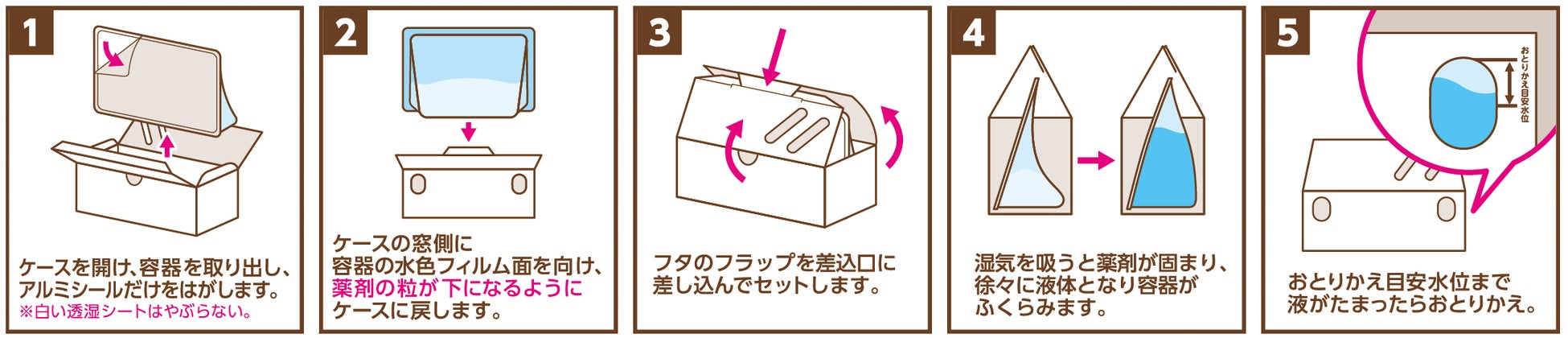 ●湿気を吸ってぐんぐん膨らむ使い捨てタイプの湿気とりです。