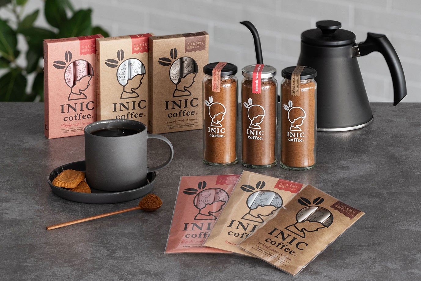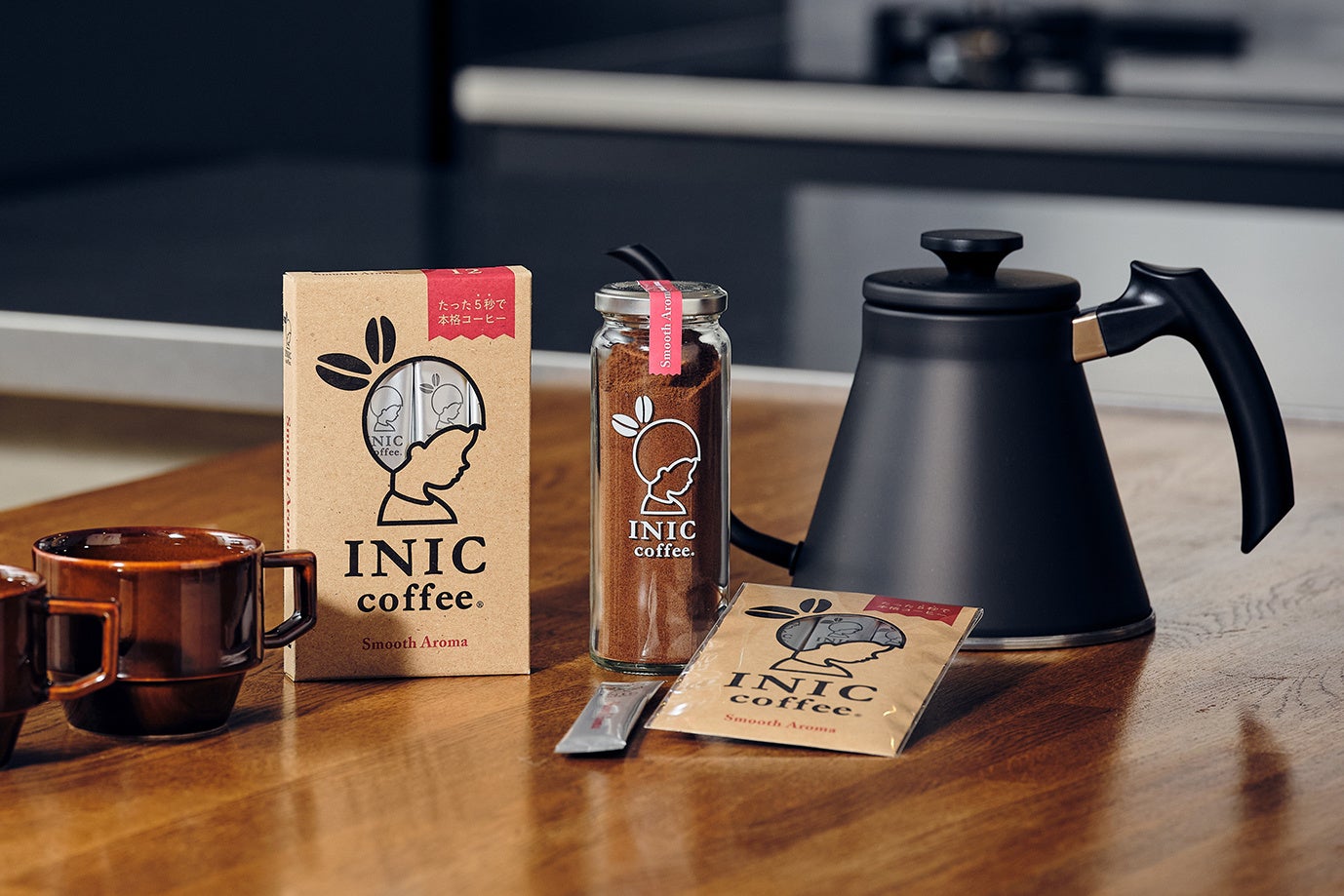 いずれもパウダーをお湯で溶かすだけでできあがり、ハンドドリップで淹れたように雑味のない本格的な味わいをお楽しみいただけます。暮らしが変わる、イニックコーヒー独自の「たった5秒で本格コーヒー」というコーヒースタイルを、新スムースアロマシリーズからお好みに合わせてご体験ください。