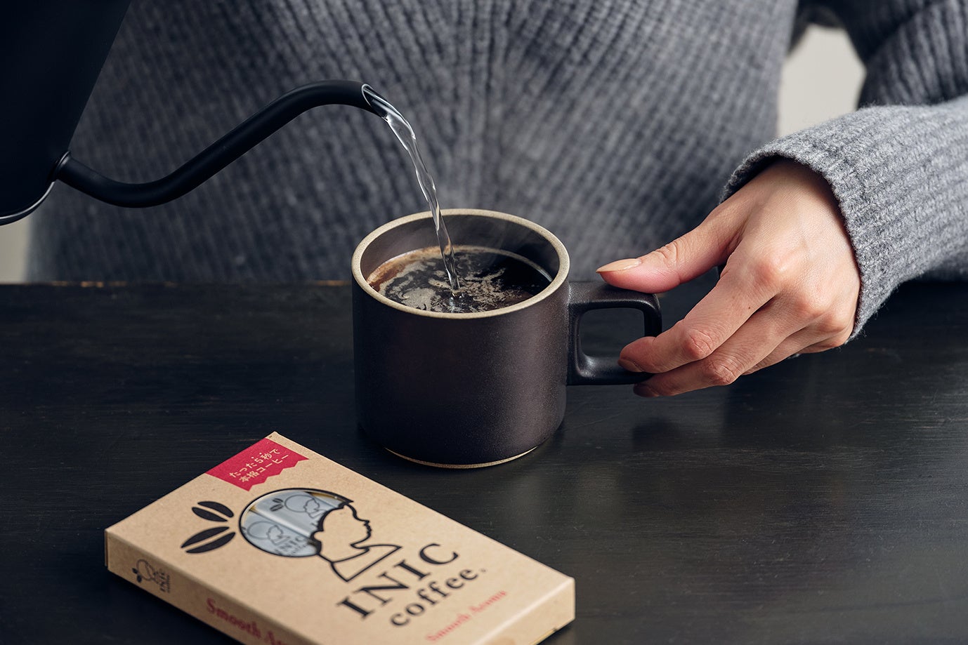 イニックコーヒーは、豆から厳選したハンドドリップコーヒーの風味を、独自の技術でそのままパウダー化しています。そのため、お湯で溶かすだけの手軽さながら、いつでもカフェのような本格コーヒーをお楽しみいただけます。洗い物やゴミも増えません。