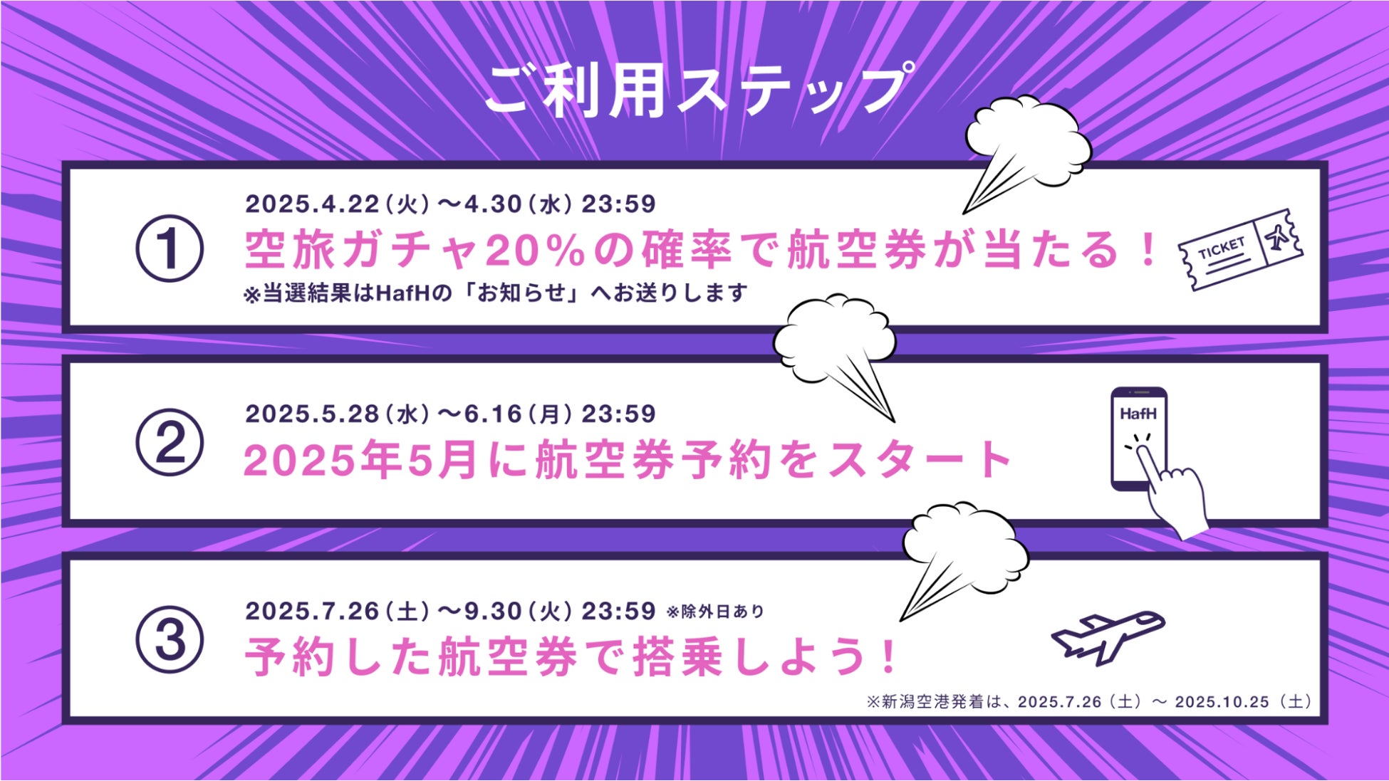 ※空旅ガチャで当選した航空券をご利用いただけるのは、HafHの本人確認が航空券予約フォーム申請時点で完了している方が対象です。