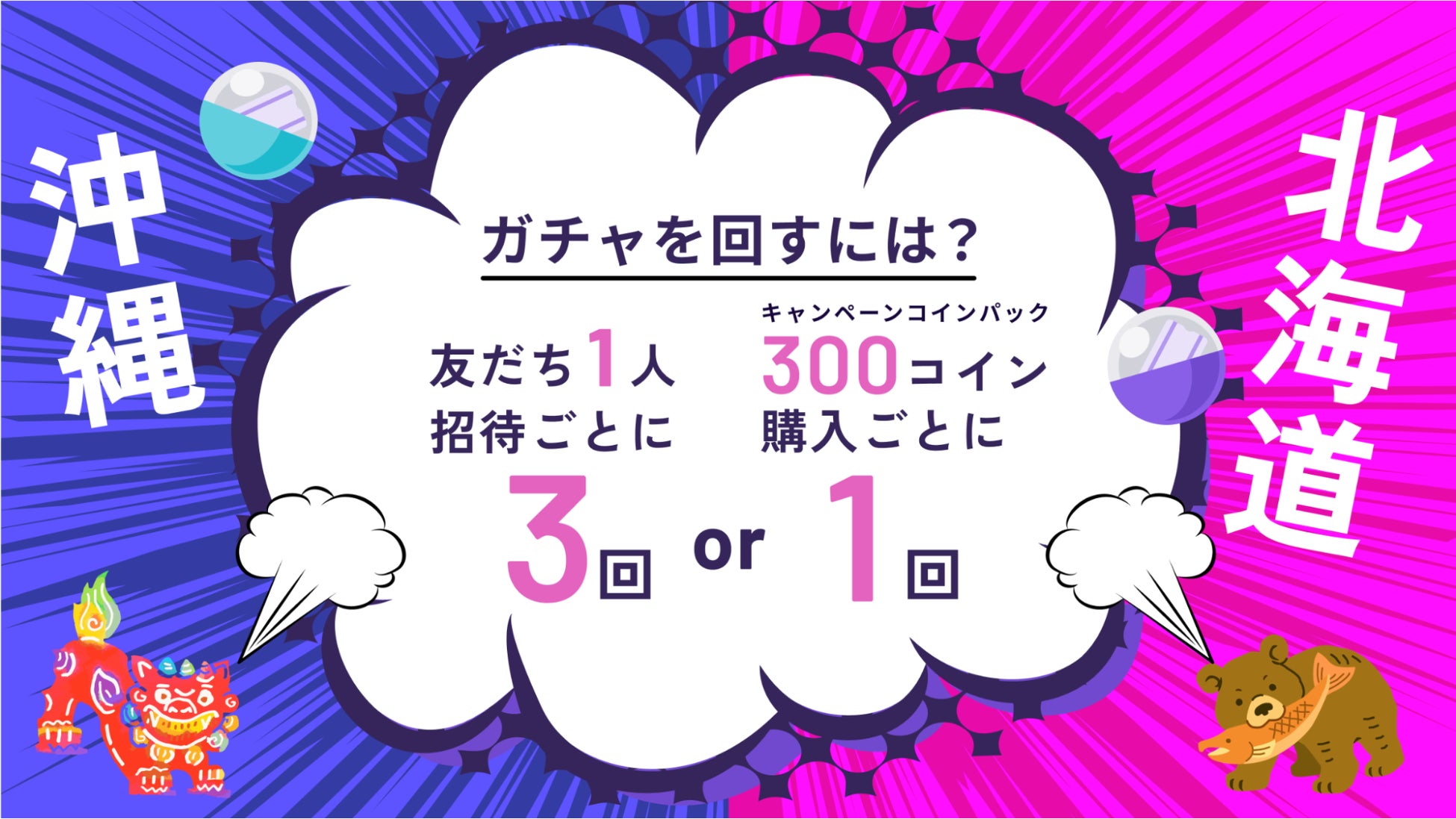 ・招待した人もされた人も、20%の確率で国内航空引換券(沖縄 / 北海道)が当たる「選べる空旅ガチャ」3回分のガチャチケットをプレゼント ※注1