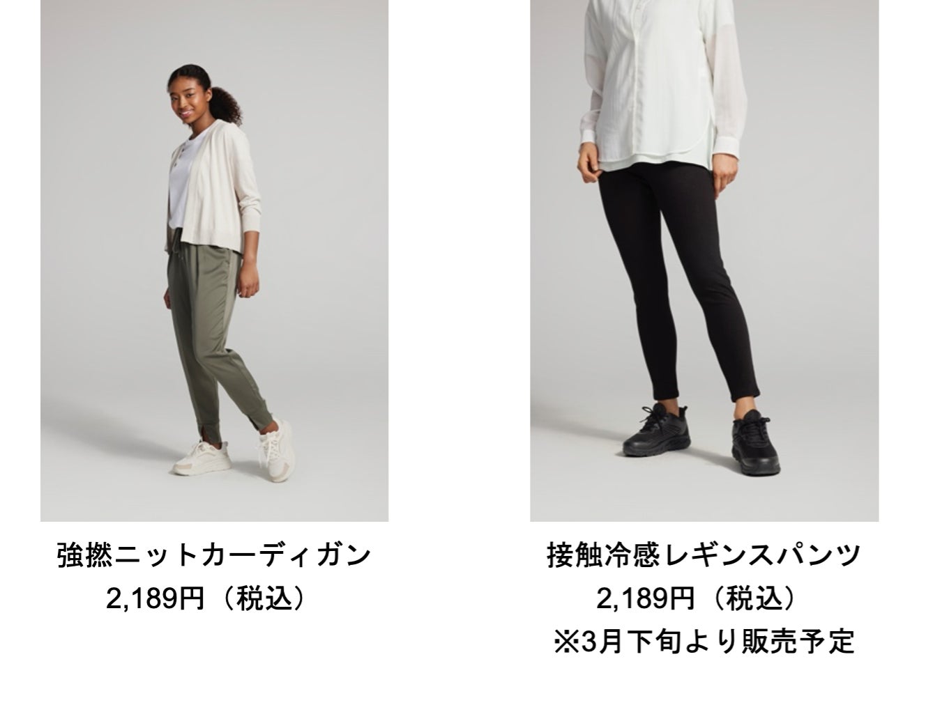 また、接触冷感素材を採用した「接触冷感レギンスパンツ」は、3,289円(税込)から2,189円(税込)と33%値下げして展開。シャツやワンピースなどとコーディネート可能なシンプルなデザインに、ひんやり涼しい接触冷感の機能素材で、春夏シーズンを快適にお過ごしいただけます。