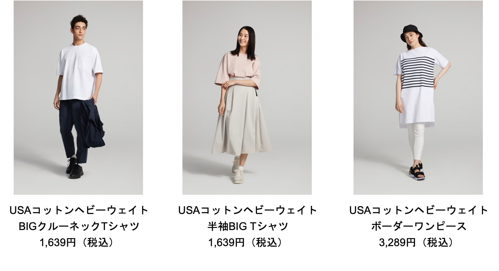 上質なUSAコットンを特殊な紡績で紡いだ生地を使用した、BIGシルエットTシャツは、25%の値下げを実施し1,639円(税込)で展開。メンズ・レディース共に、豊富なカラー展開でご用意いたしました。また、生地にはUVカット機能と接触冷感機能がついてより快適にお過ごしいただけます。さらに、同生地を使用した「USAコットンヘビーウェイトボーダーワンピース」は25%の値下げを実施し3,289円(税込)で展開。ワンマイルウエアとしても取り入れていただけるほか、程よいハリ感と厚みで、低価格なのに高見えできるアイテムです。