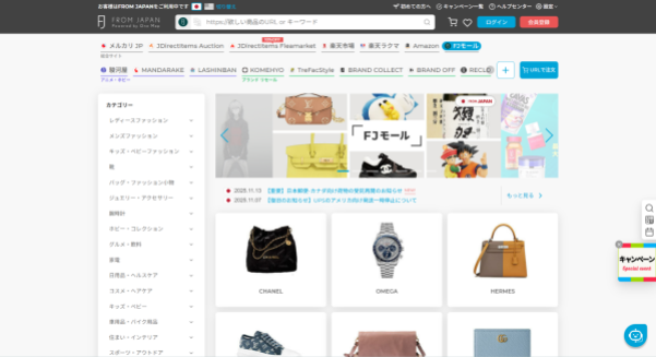・FROM JAPANが運営する「FJモール」への商品出品