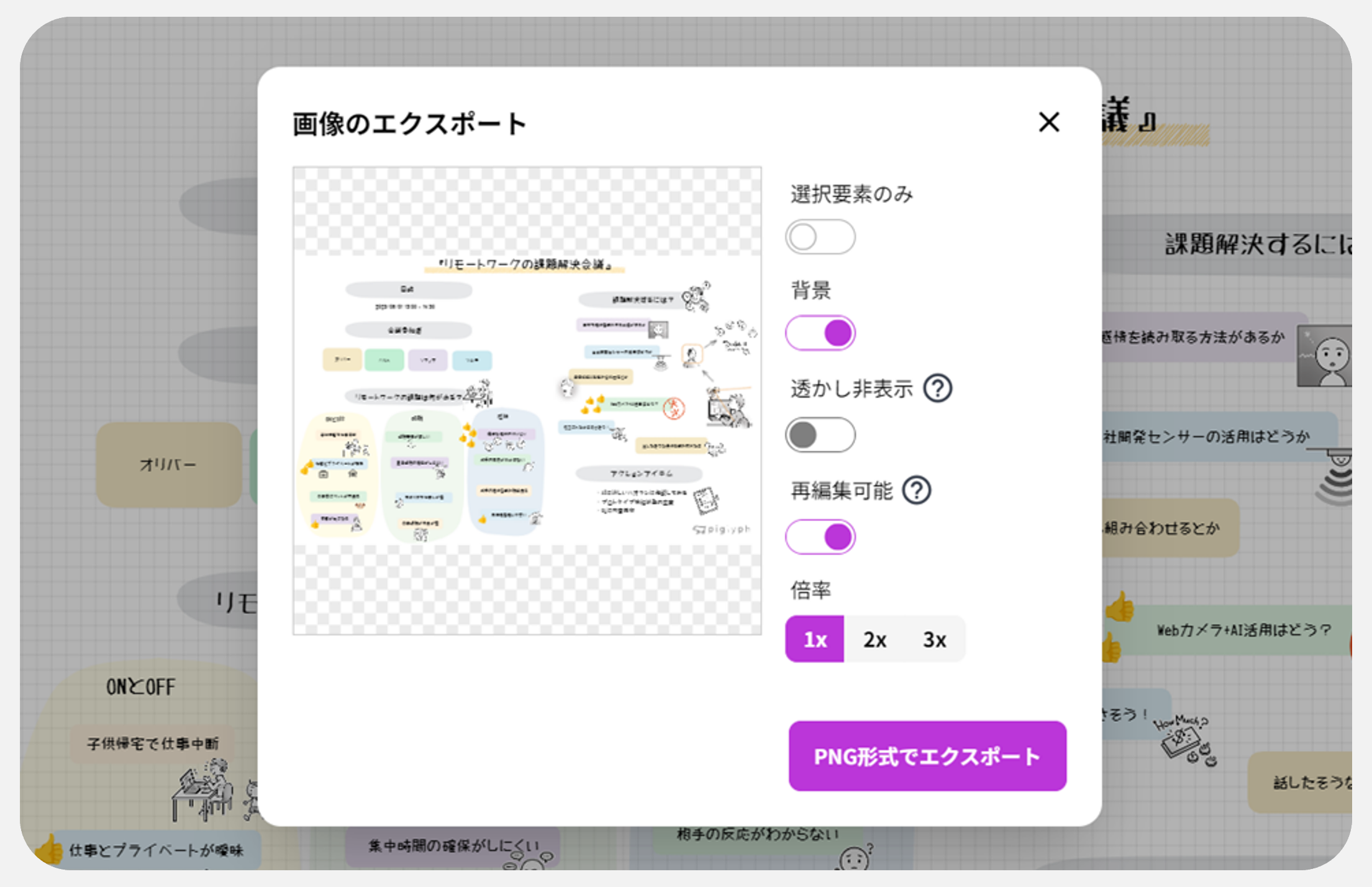 会議の様子をそのまま画像として保存し、レポートや報告書としてご活用いただけます。