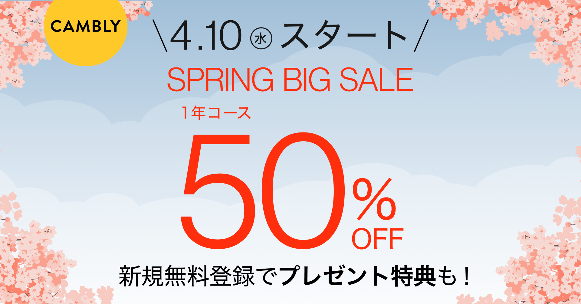 4月10日より英会話受講料が半額になるSPRING BIG SALEがスタート