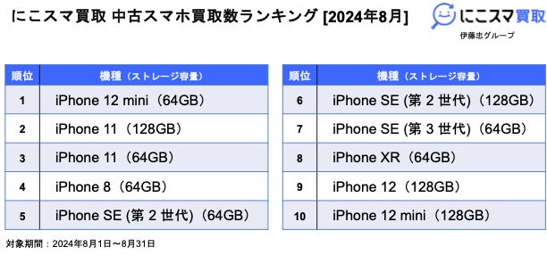 にこスマ|2024年8月中古スマホ販売・買取数ランキング
