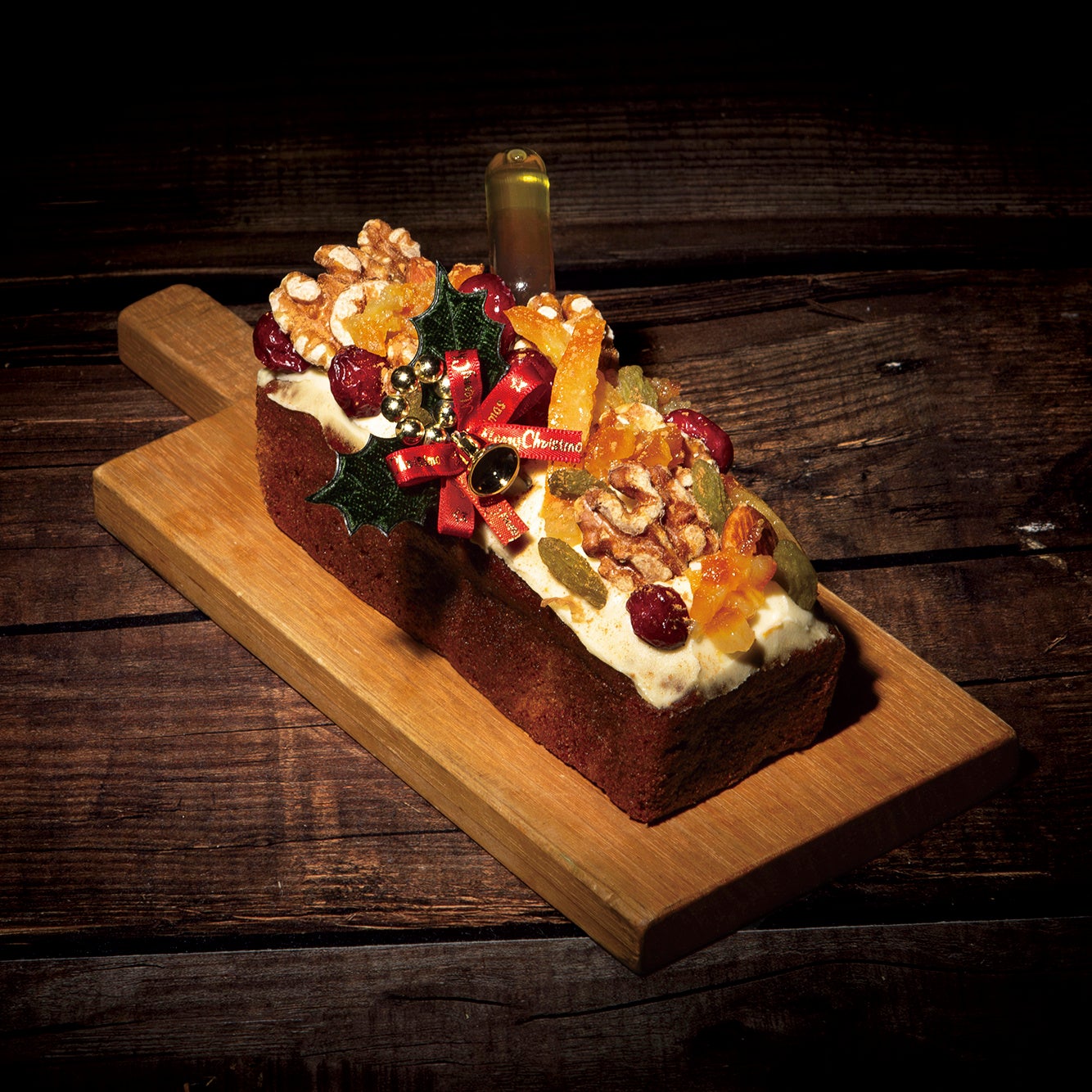 人気商品「キャロットケーキ」がクリスマス仕様に!ドライフルーツやナッツ、スパイス入りの生地とクリームチーズが好相性。オリーブオイル&メープルシロップをお好みでかけてどうぞ。