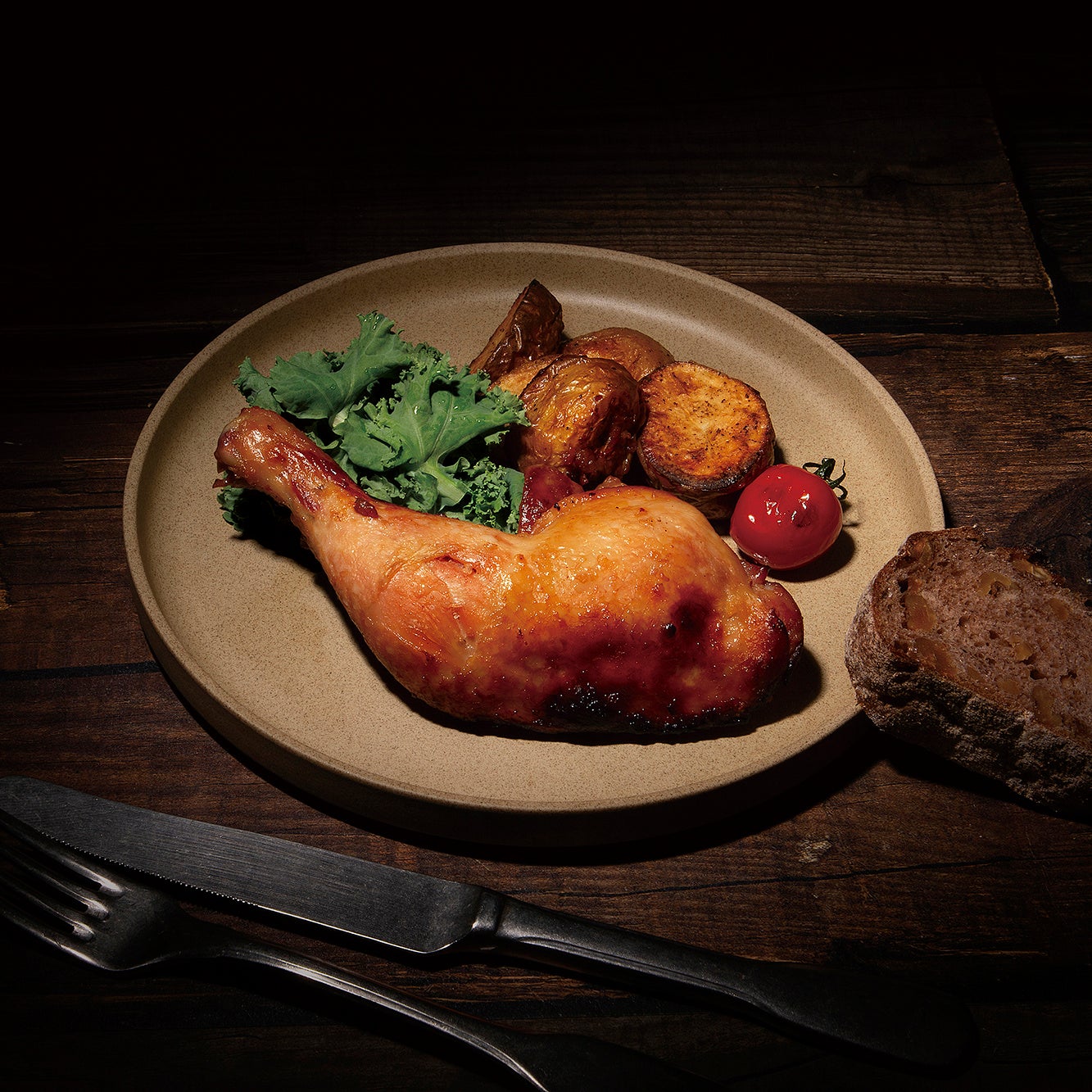骨付きの鶏もも肉を塩麹でやわらかく仕上げました。ほんのり香るタイムとニンニクの香りがGOOD!付け合わせのローストポテトと一緒にどうぞ。