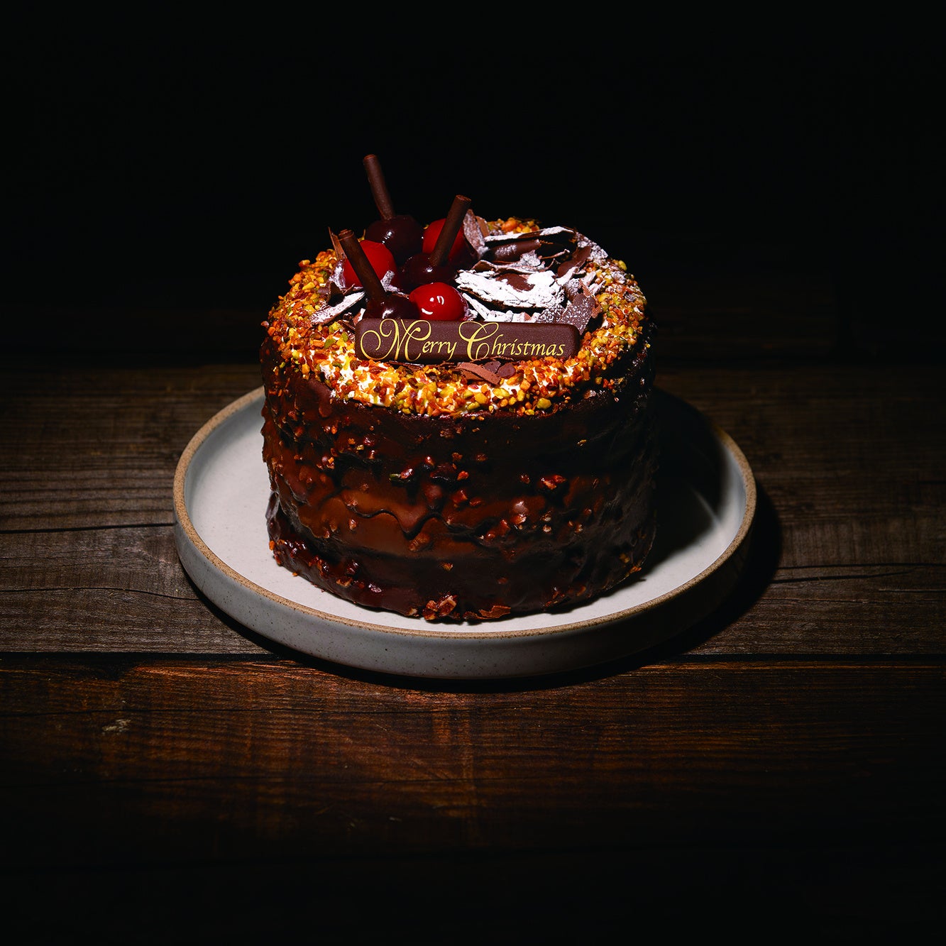 しっとりとしたチョコレート生地となめらかな口溶けの2種のクリーム、チェリーの酸味、ナッツの食感がアクセントに効いたキルシュ薫る大人仕立てのクリスマスケーキです。