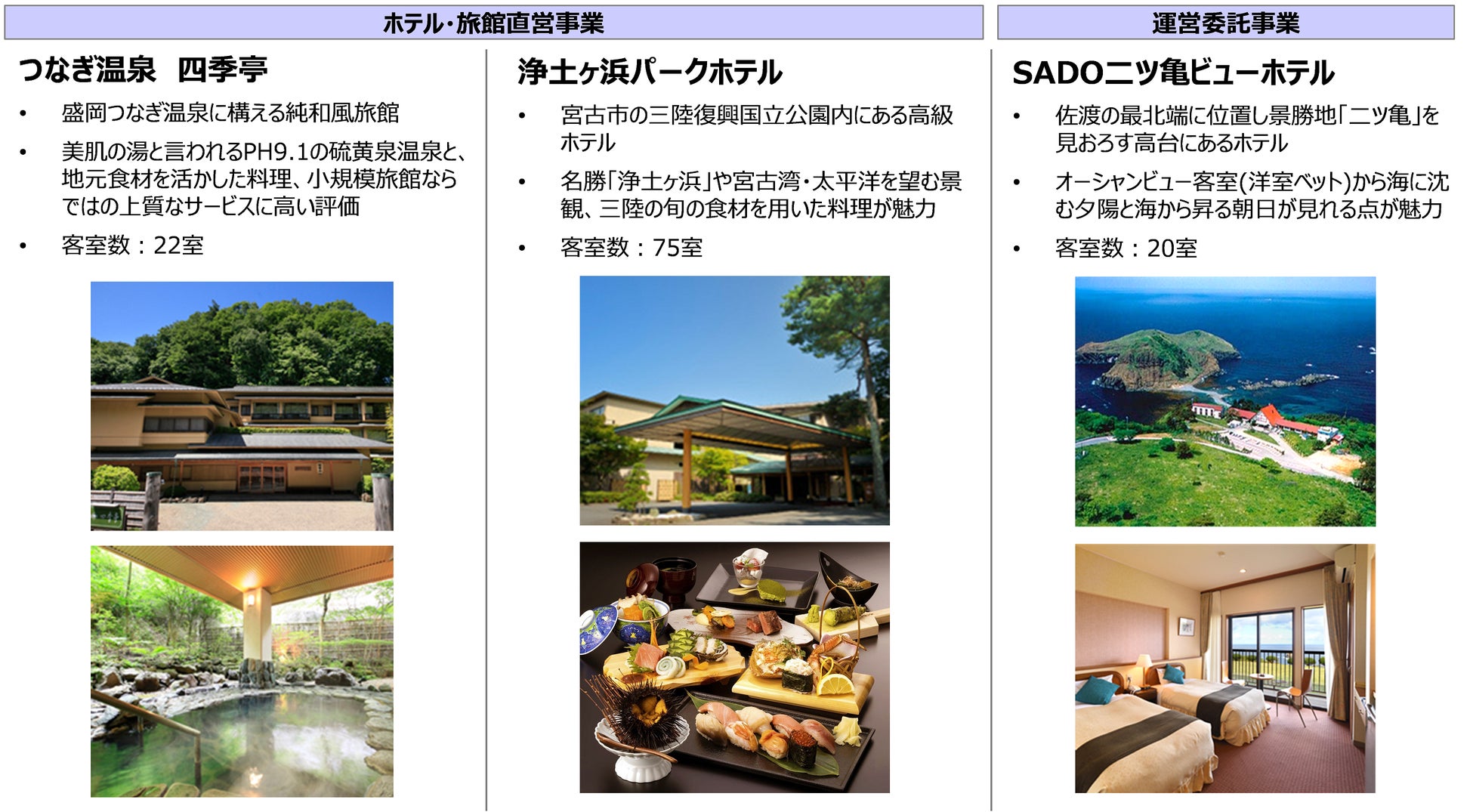 ●岩手県内のホテル・旅館2館を直営(つなぎ温泉 四季亭(盛岡市)・浄土ヶ浜パークホテル(宮古市))