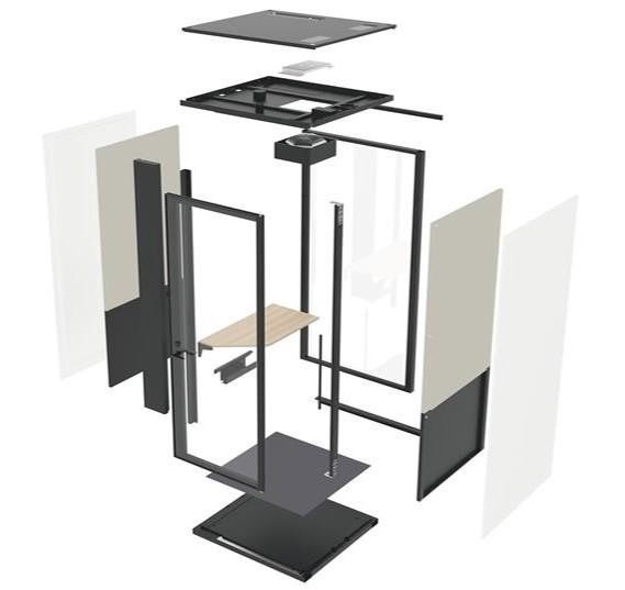 ブースに取り付けるドア周りの構造を開発し、ドアとブース本体のすき間をなくしたことで、開閉時に手を挟む心配がありません。また、従来モデルと同等の高い遮音性能を維持しながら、吸音性能が向上しました。ブースの外からの音がブース内に入らないように遮音するだけでなく、ブース内の音の反響・残響を吸音し抑制することで、Web会議時に声をはっきりと聞き取りやすくしています。