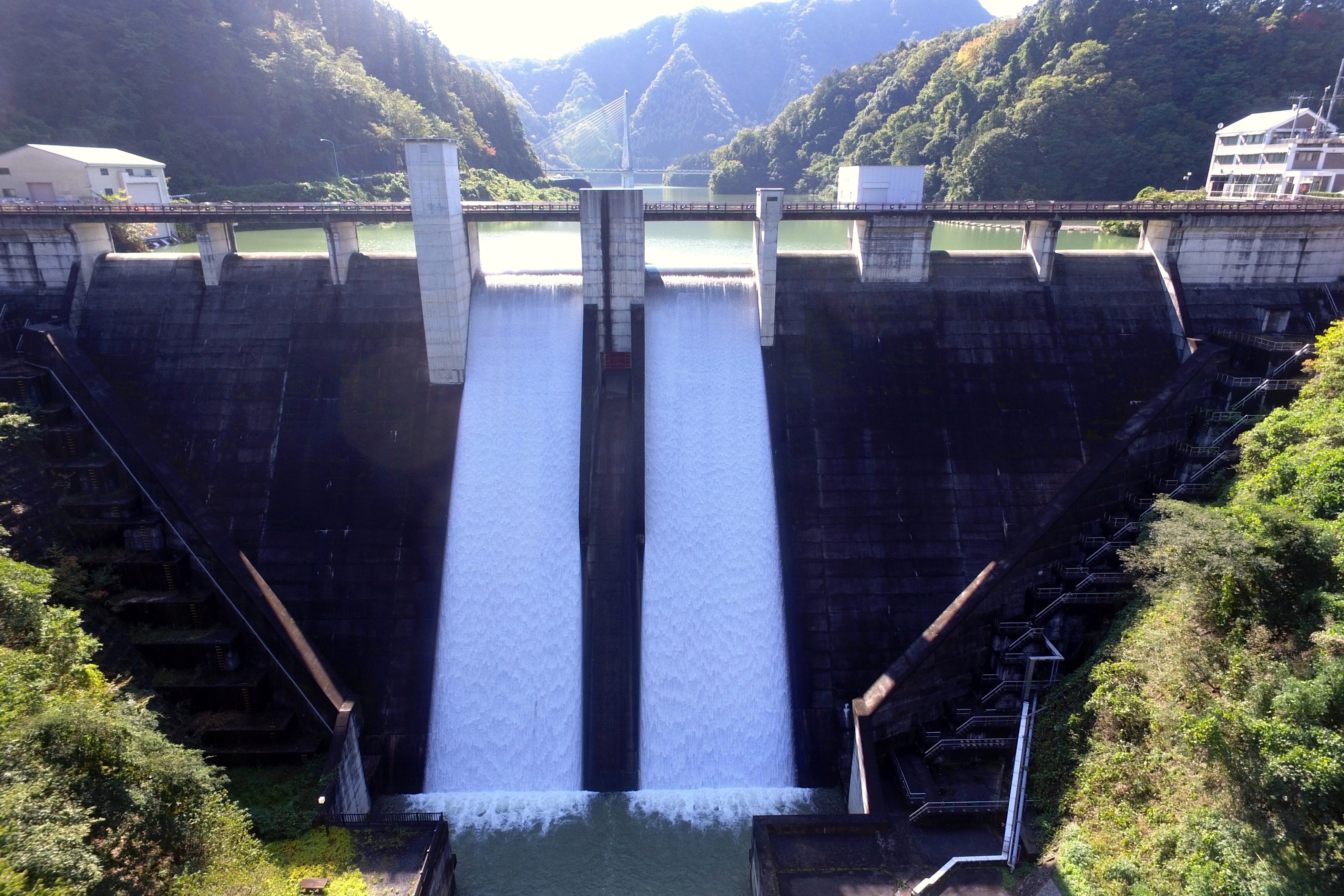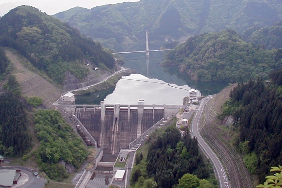 合角ダムは、荒川水系吉田川に建設された高さ60.9mの多目的ダム。ダム湖には2つの大きな橋が架かり美しい景色を望めます。ダム職員の案内で一般開放されていないエレベーターや監査廊を経てダムの下からも見学します。