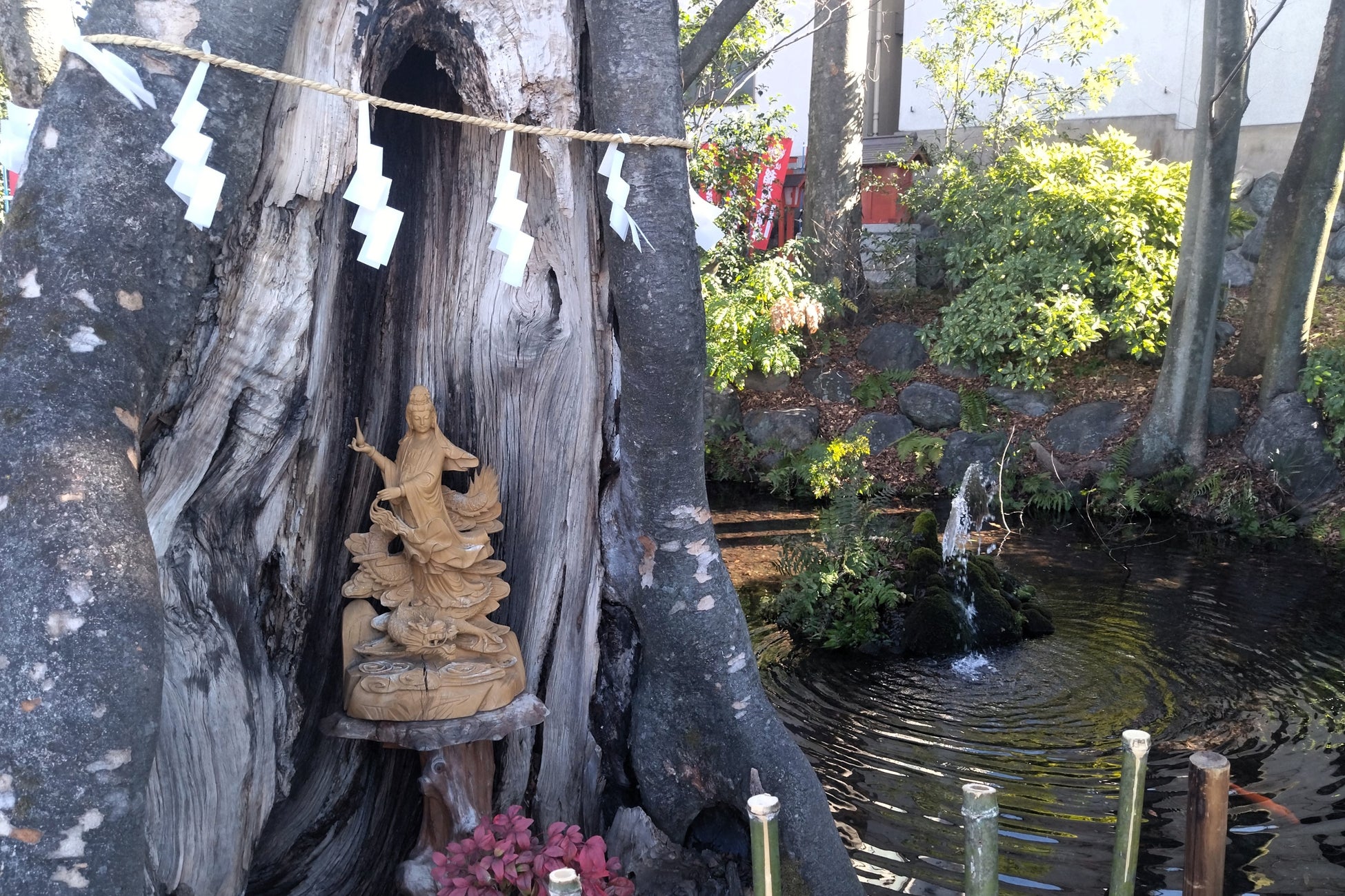 秩父今宮神社は今年の干支・辰(龍)に因んだ神社で、天然記念物の大ケヤキ「龍神木」や武甲山伏流水が湧き出る「龍神池」、お金などを清めると万倍になるといわれ、水みくじも体験できる「清龍の滝」などがあります。
