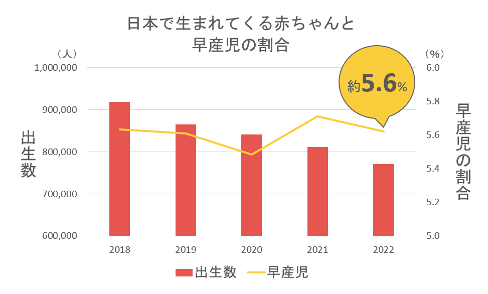早産児とは、在胎37週未満で出生した赤ちゃんのことを言い※1、厚生労働省の22年の人口動態調査によると、早産児の出生数は年間約4.3万人で、この数は、生まれてくる赤ちゃんのうちの約5.6%にあたります※2。このような約20人に1人が早産児で生まれる日本において、早産児がどういったケアを必要とし、どのように成長していくのか、またその過程でご家族にどのような悩みがあり、どのような想いでいるのかは、早産児が生まれた当事者であるご家族以外にあまり知られていないのが現状です。