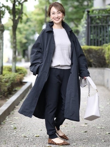 秋はトレンチコートとして、冬はショートダウンと合わせて、秋冬通して長く使える万能アイテムです。
