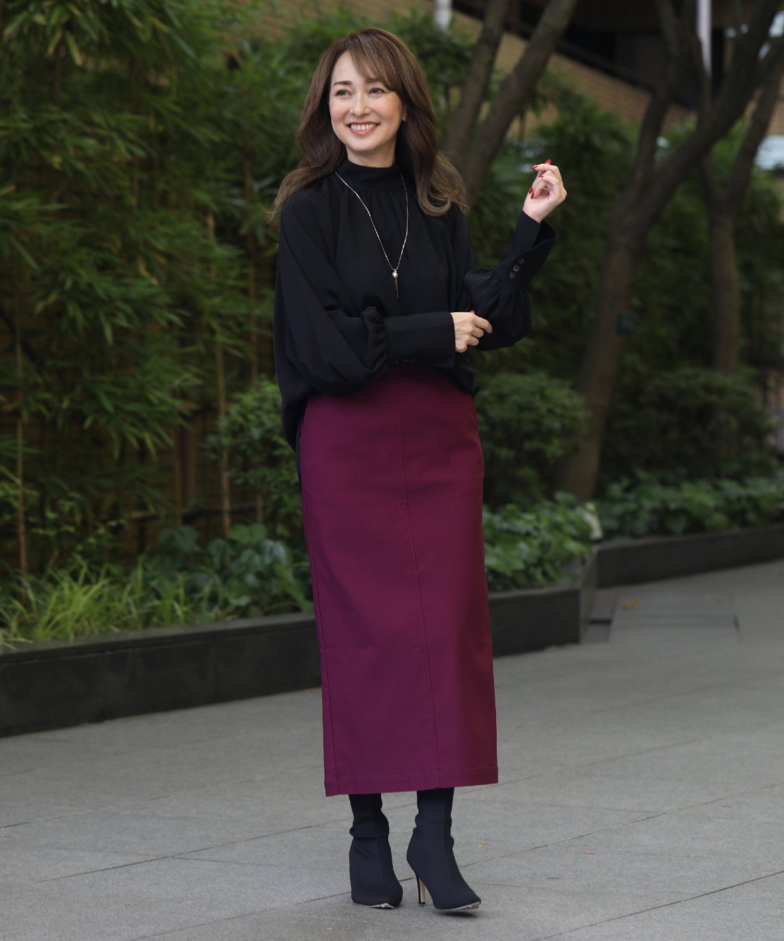 品のある素材とシンプルなデザインで、合わせるボトムスによってキレイめにもカジュアルにも着こなしが楽しめるブラウス。秋冬のアイテムとして1つ持っておくと、様々な着回しができる優秀トップスです。