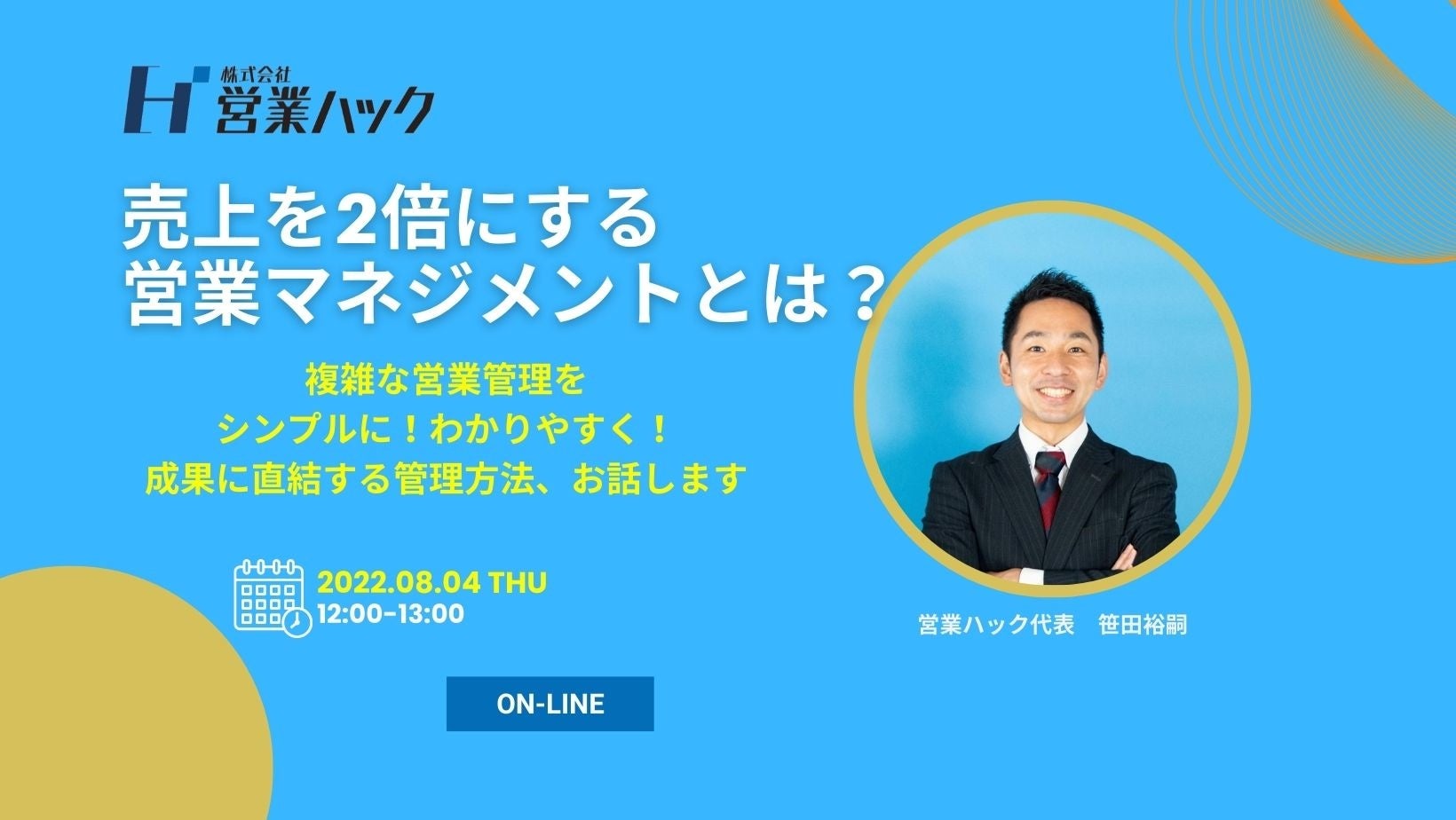 売上を2倍にする営業マネジメントとは?複雑な営業管理をシンプルに!わかりやすく!解説します|ランチタイムウェビナー開催|8/4(木)12時~