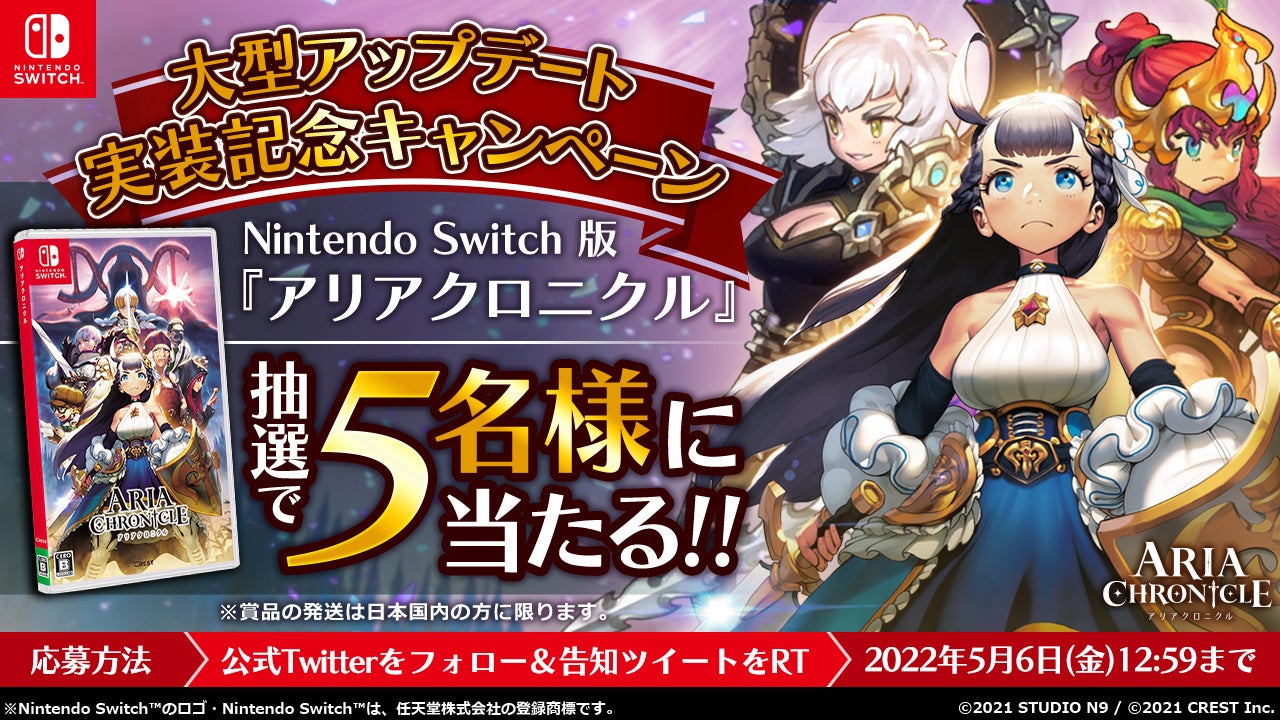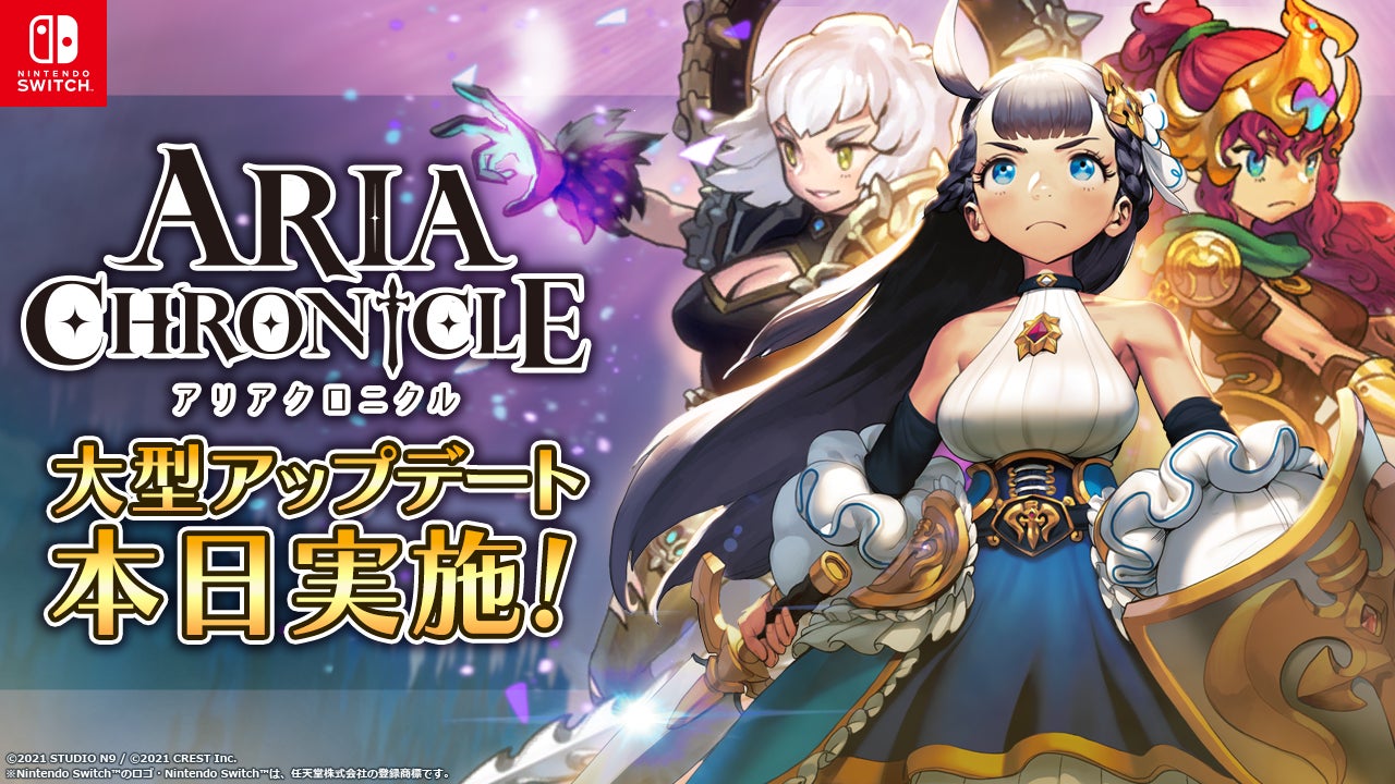 株式会社CREST(以下「CREST」)は、STUDIO N9開発の『ARIA CHRONICLE -アリアクロニクル-』(以下『アリアクロニクル』)Nintendo Switch™版に於いて本日大型アップデートを実施したことをお知らせ致します。
