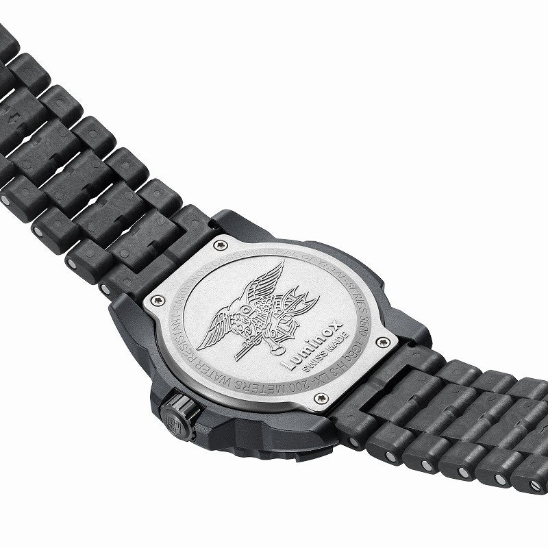 今回の新作は、ルミノックス独自のCARBONOX™素材を、ケース、ベゼル、そしてブレスレットに採用し、ネイビーシール3500シリーズ全体の中でも最軽量モデルの一つであり、あらゆる冒険やミッションにおいて耐久性、強度、そして快適性を実現しています。