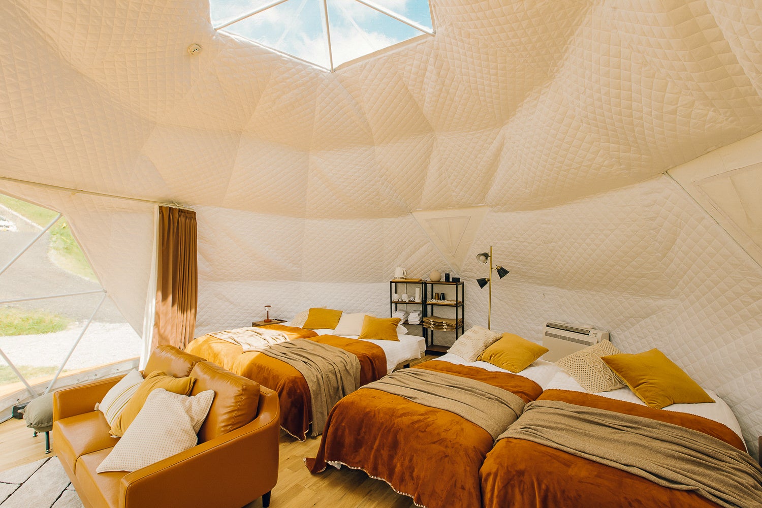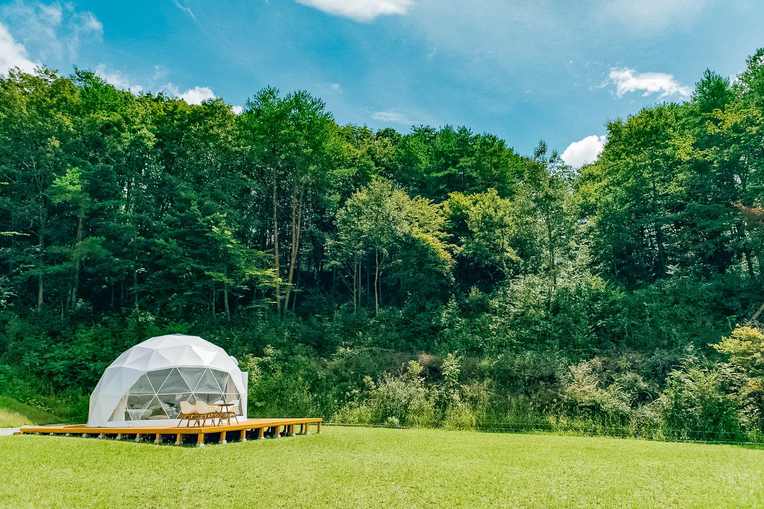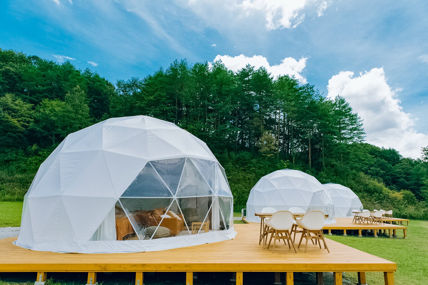 非日常空間が広がるドーム型テントは隣との距離が十分にとれた広い敷地に配置し、プライベート空間が保たれております。