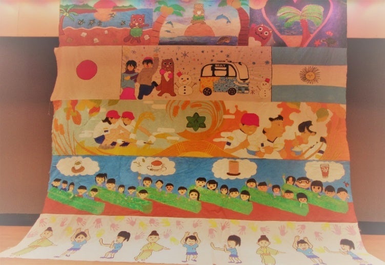 この「世界一大きな絵」の作成において、茨城県境町の小学校5校の児童が県代表として参加、作成した5m×5mの大きな絵が大阪万博会場に展示されました。