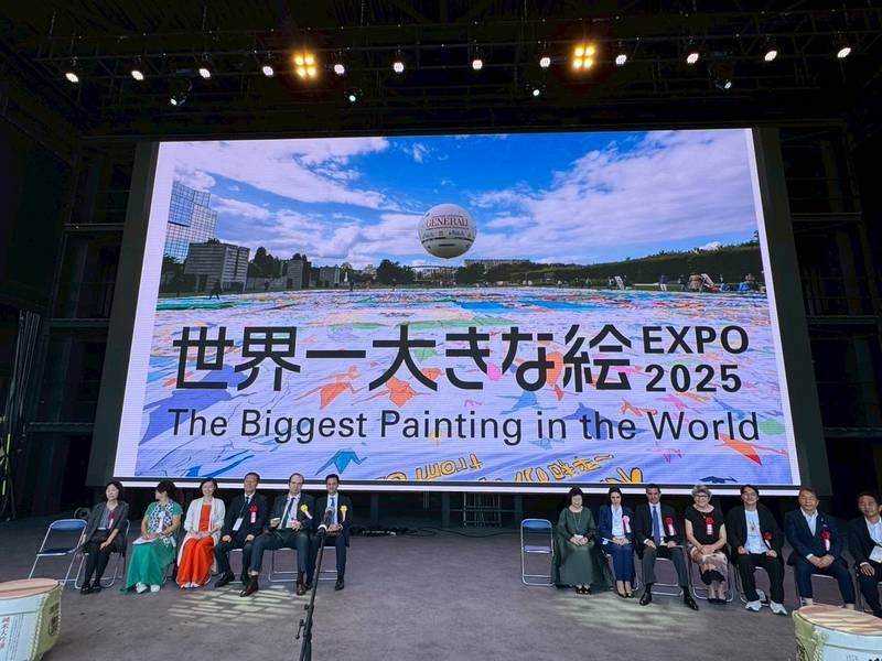 10月1日(水)、EXPO 2025大阪・関西万博のフェスティバルステーションにて、特定非営利活動法人アース・アイデンティティー・プロジェクツ(代表:河原 裕子氏)が主催する「世界一大きな絵EXPO 2025」の展示、完成式が催されました。