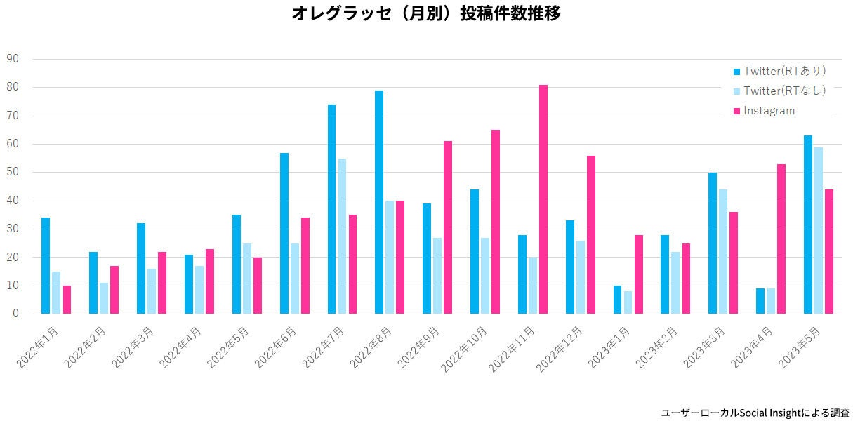 ユーザーローカル Social Insightによる調査データを当社にてグラフ化。