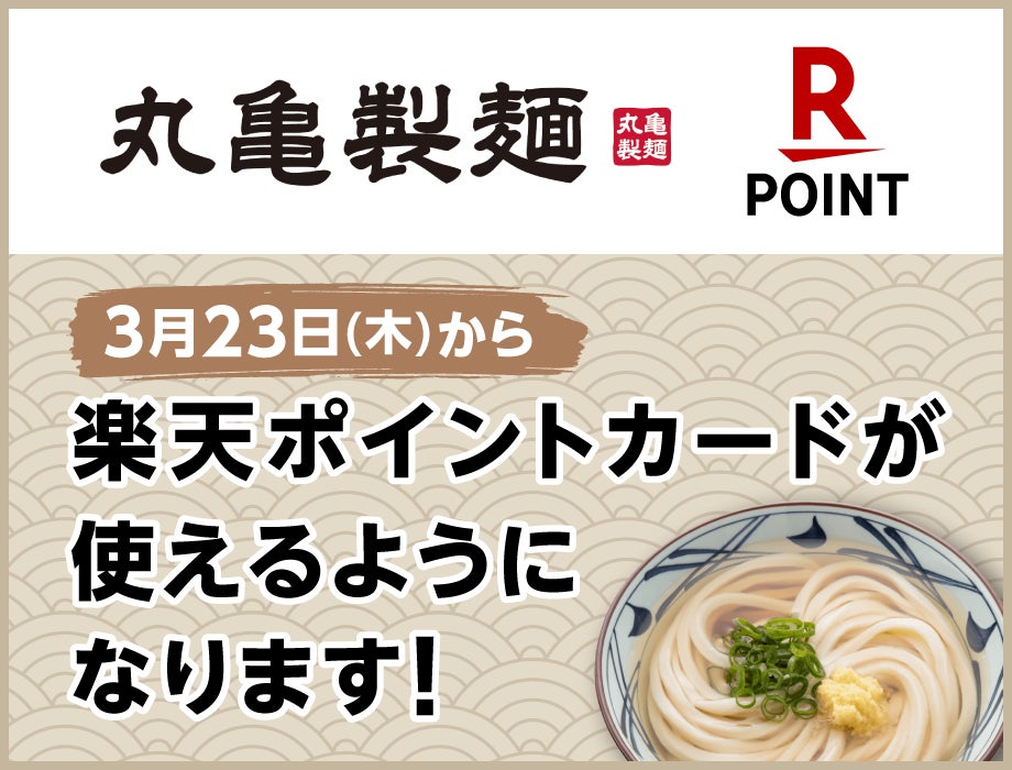株式会社丸亀製麺(本社:東京都渋谷区、代表取締役社長:山口 寛)が展開する、食の感動体験を追求し、手づくり・できたてにこだわる讃岐うどん専門店「丸亀製麺」は、2023年3月23日(木)より楽天ペイメント株式会社が運営する共通ポイントサービス「楽天ポイントカード」が全国の丸亀製麺にて利用可能になることをお知らせいたします。