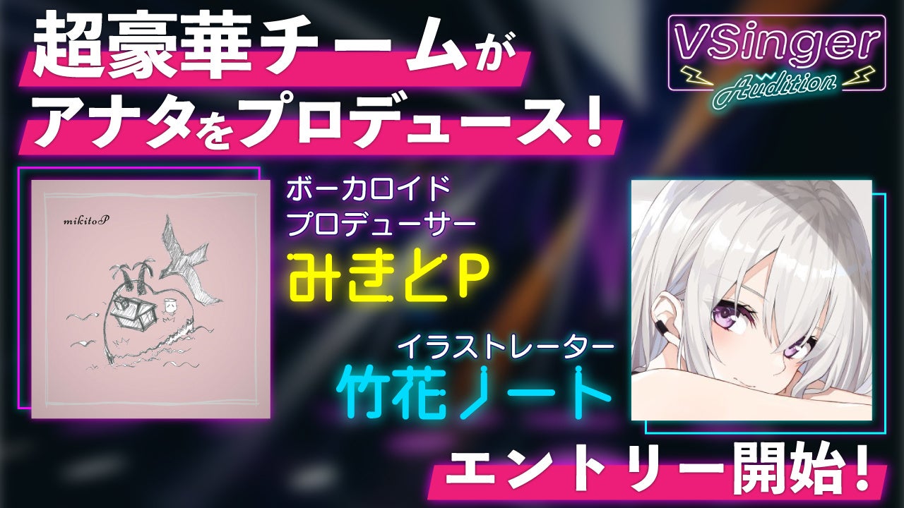 次のスターは君だ!「ロキ」「少女レイ」のみきとP、超人気絵師竹花ノート等、豪華布陣でVSingerデビュー!「VSinger Audition 2022」を4月4日開始。世界にキミの歌声を届けよう!