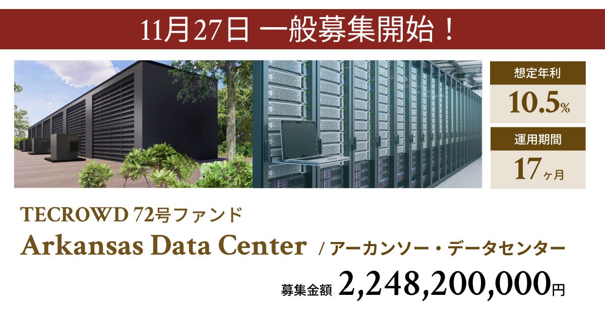 2024年11月27日(水)18時より72号ファンド Arkansas Data Centerの募集を開始いたしました。