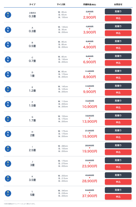 荷物以上に大きな部屋を借りてしまうことや、狭すぎて荷物が入らなかったなんていうトラブルを回避できます。