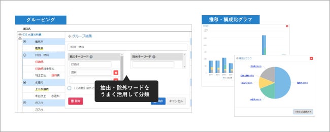 会計データを活用して、摘要・補助・取引先・部門・プロジェクトの切り口からコストの内訳をグループ化し、分析することができます。分析結果から勘定科目内訳明細書の資料作成に利用したり、毎月の取引で金額の大きい勘定科目の改善行動を検討し、PDCAサイクルを回すことができます。