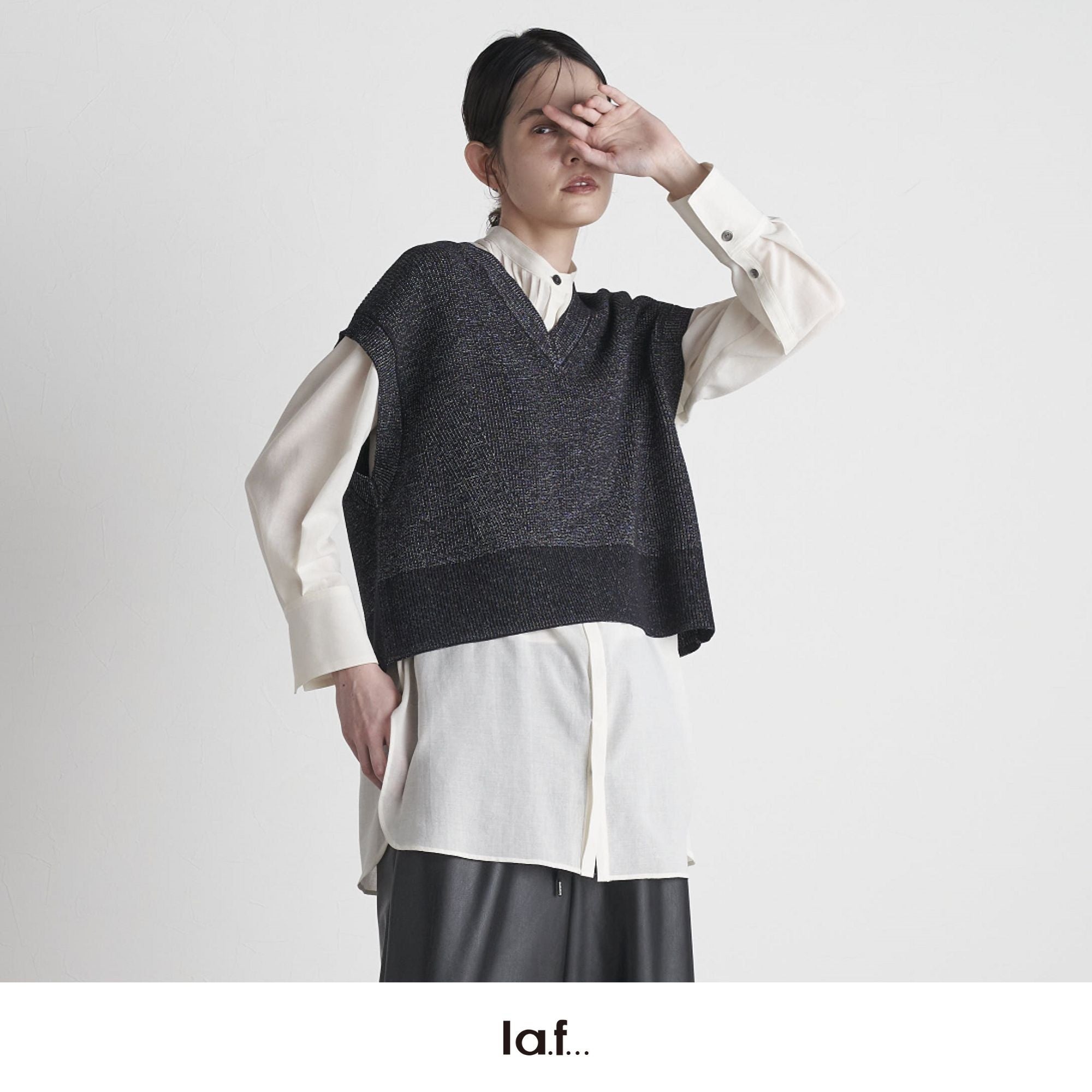 デニム見えミドルゲージニットジレ 18,700円(税込み)