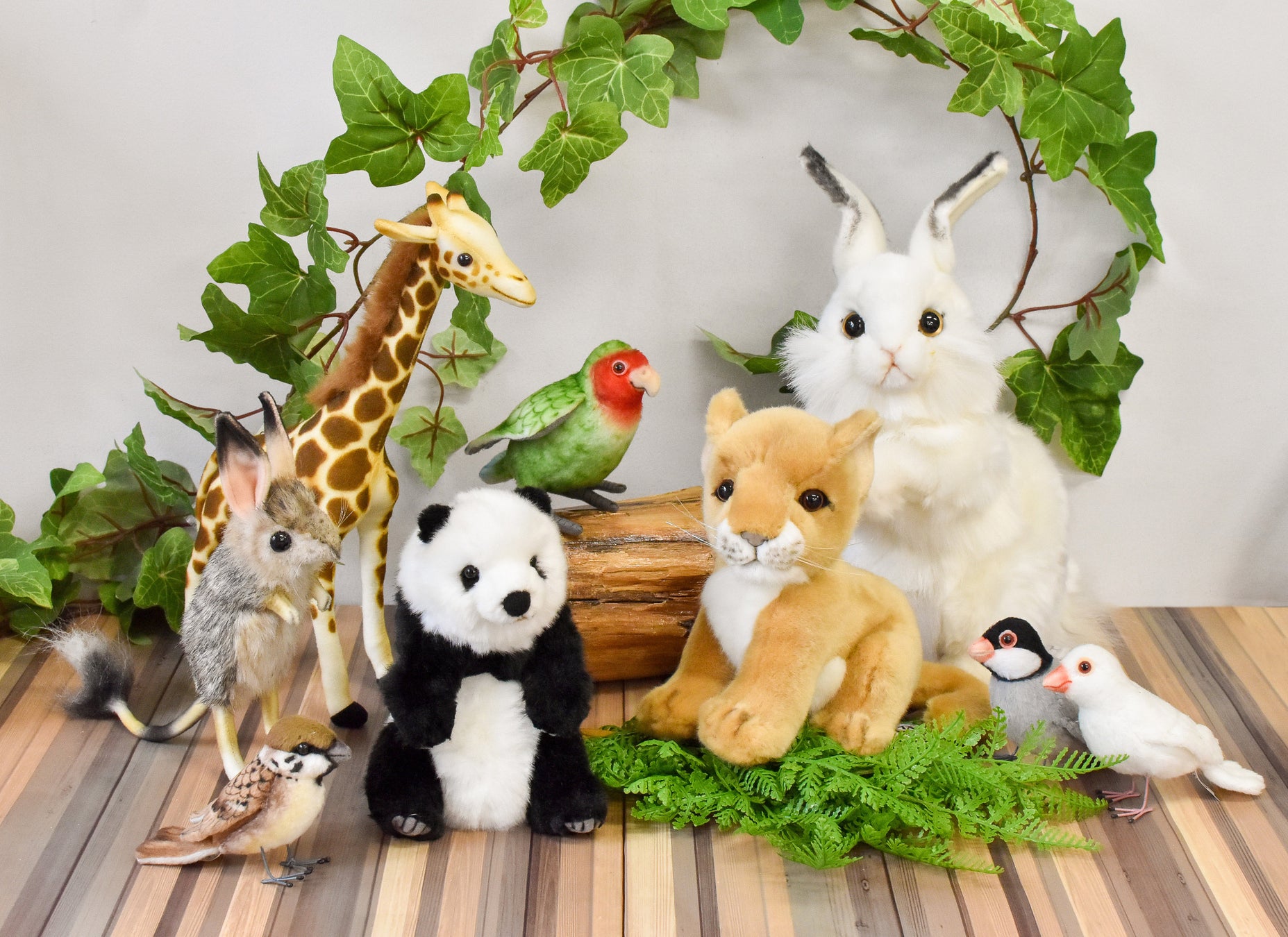 世界のさまざまな大陸にいる動物たちを細部までリアルに再現したぬいぐるみ。