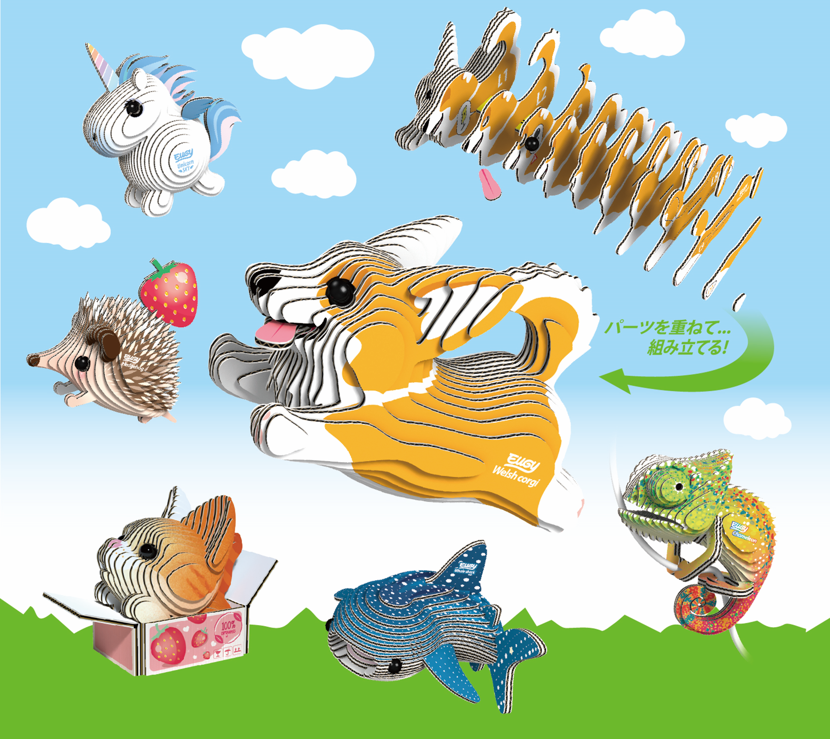 紙のパーツを順番に重ねて貼り付けるだけで、簡単に作れるクラフトキットEUGY(ユーギー)。「作って」「飾って」「集めて」楽しい紙製3Dパズル。