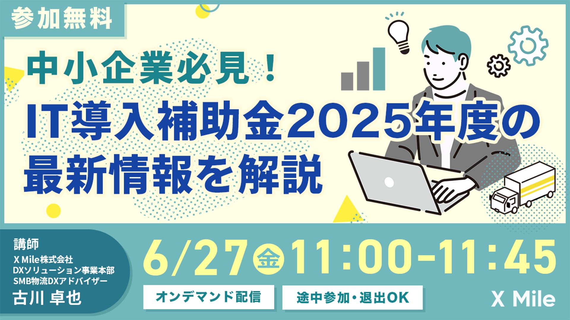 このたび、当社が申請した「IT導入補助金2025」が採択されたことを受け、物流業界関係者の皆さまを対象に、補助金の活用をテーマとしたオンラインセミナーを開催いたします。