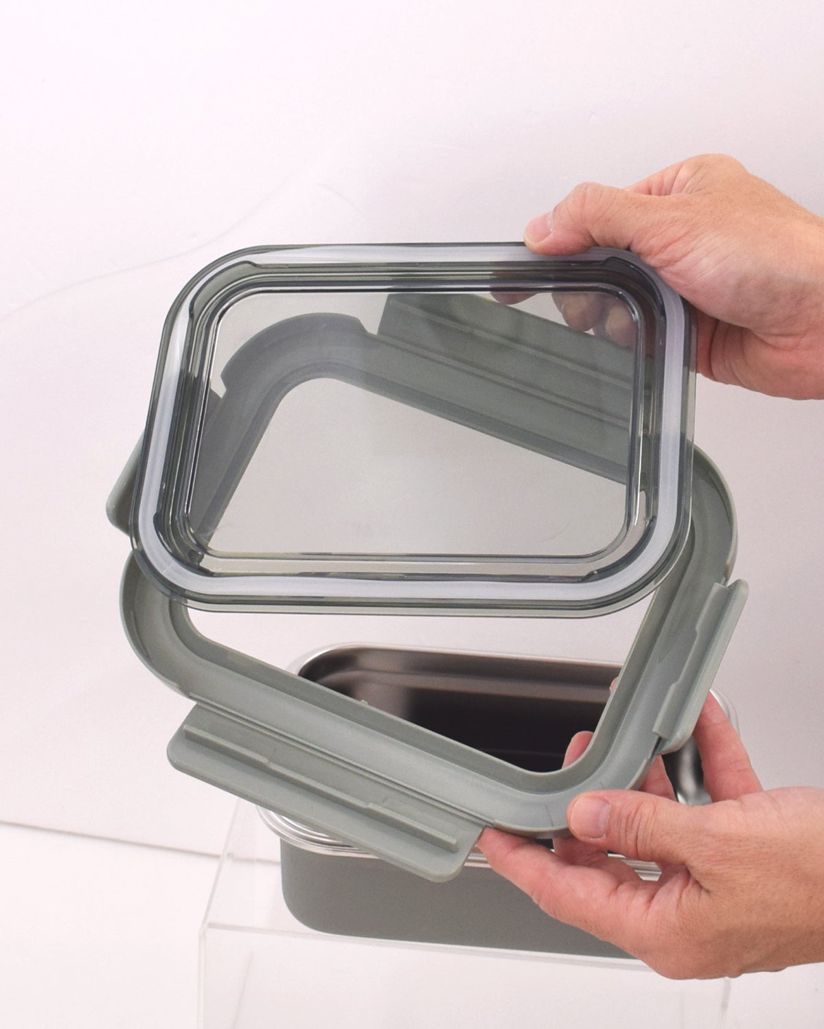フタは4点ロックでしっかりホールド。パッキンも付いているので持ち運びに安心です。分解して洗えます。色透明なので、保存している際にも中に入っているおかずの確認がしやすい。