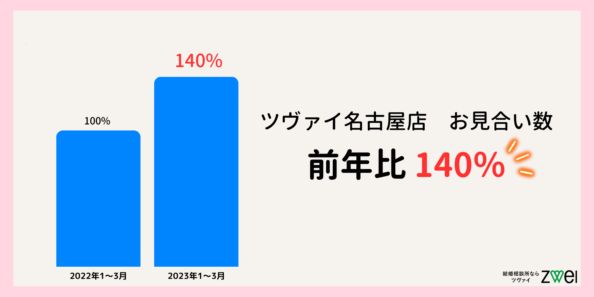 ツヴァイ名古屋店のお見合い数は前年比140%に増加